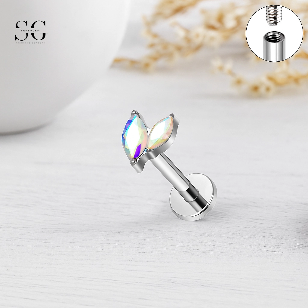 Adorn your piercing with the captivating brilliance of the Sensagem SG4343 Internally Threaded Marquise Cluster Labret. This exquisite piece features a stunning cluster of marquise-cut zircons at the top, meticulously arranged to create a mesmerizing shape that resembles delicate wings or a blossoming cluster. Its elegant and versatile design makes it an ideal choice for various piercings, including earlobe, helix, conch, tragus, or lip, adding a radiant and sophisticated touch to your personal style.