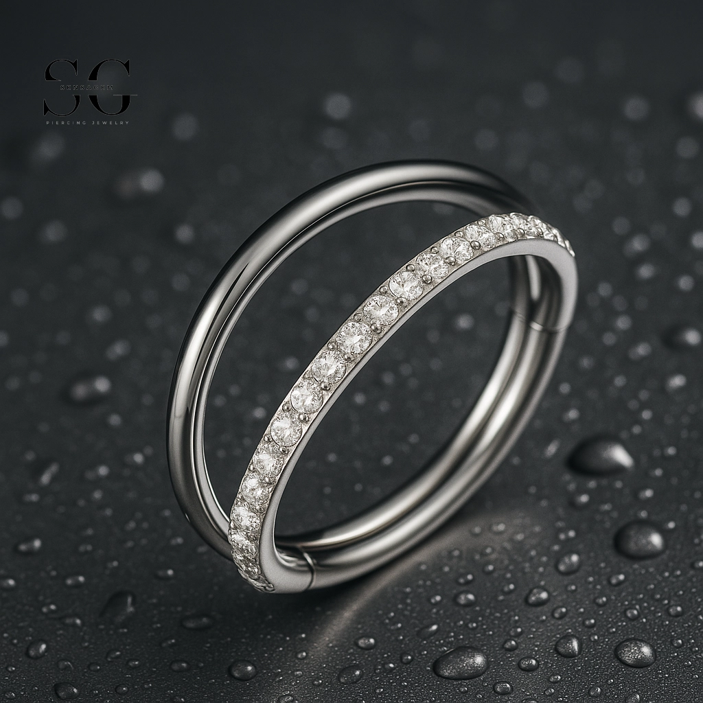 O SG3039 G23 Titanium Crystal Paved Hoop Nose Ring is a stylish and sophisticated piece that combines timeless elegance with modern design. Feito de implant-grade G23 titanium (ASTM F136), this hoop nose ring features a smooth and sleek finish adorned with sparkling crystals along the edge. Disponível em ambos titânio e ouro finishes, it adds a touch of refinement to your nose piercing collection. Sized at 8mm in diameter, this piece is perfect for daily wear or special occasions. The high-quality titanium ensures a hypoallergenic and durable experience, offering comfort without irritation.