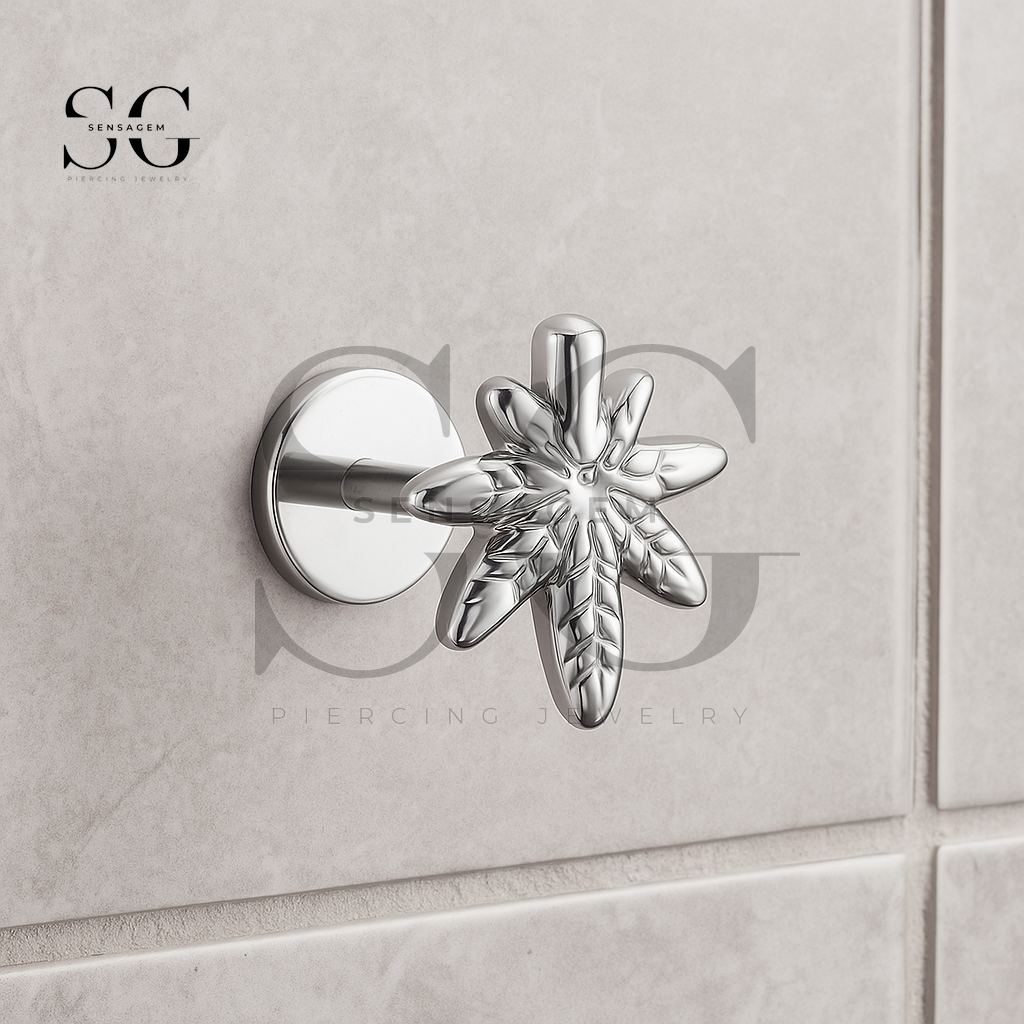 Show off your bold style with the Sensagem SGYS1210 Internally Threaded Labret, featuring a unique and intricately detailed Cannabis Leaf bästa. This standout piece has a highly textured, dimensional design, offering a modern and expressive aesthetic.